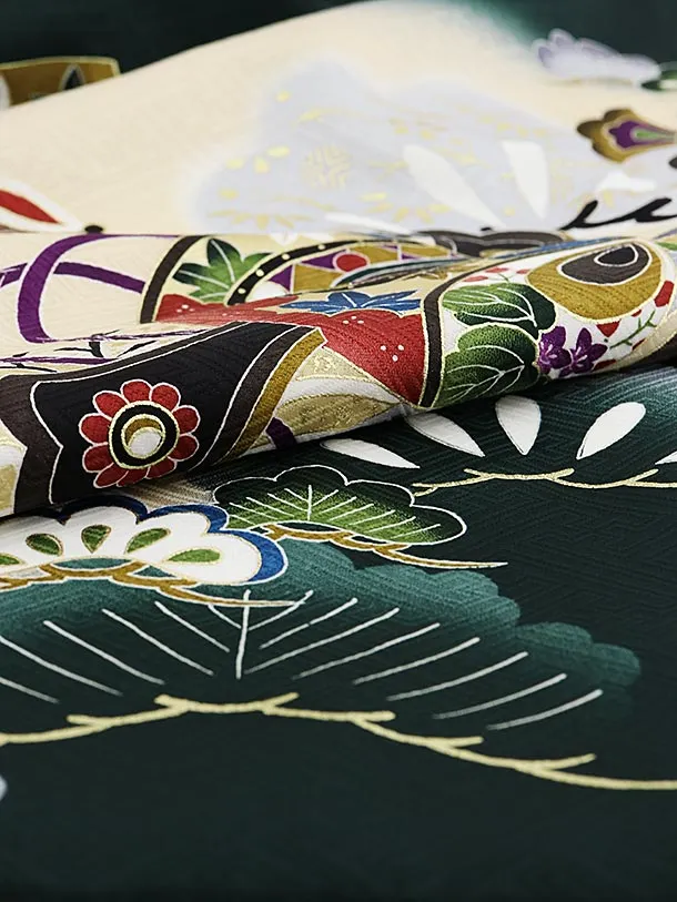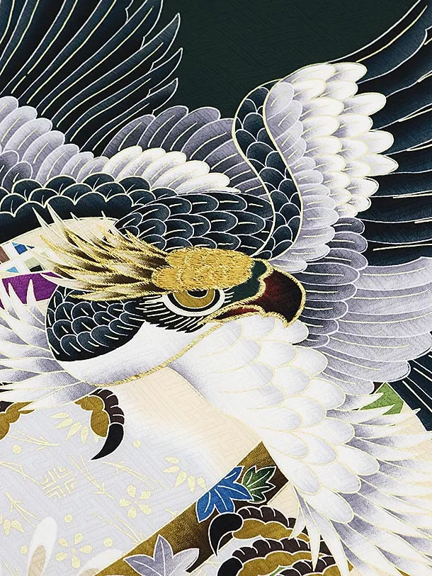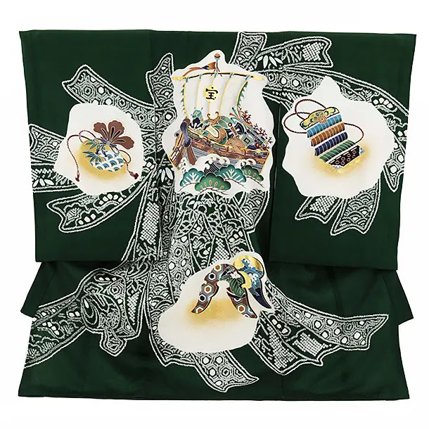 男児産着 お宮参り レンタル 正絹 1589 深緑地 松宝鷹
