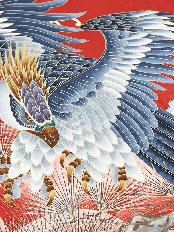 男児産着 お宮参り レンタル 1599 赤茶色 波に松鷹
