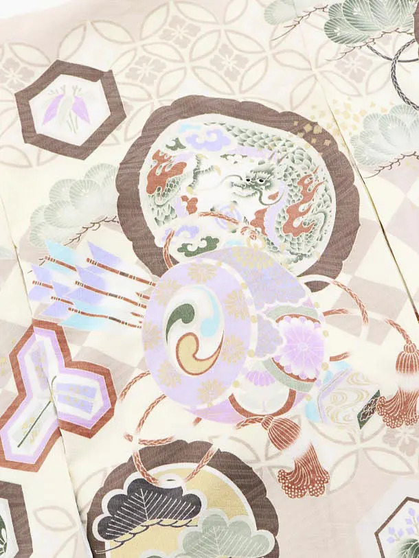 男児産着 お宮参り レンタル 1619 乙葉 ベージュクリームぼかし紋