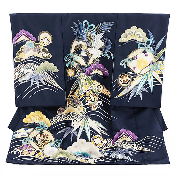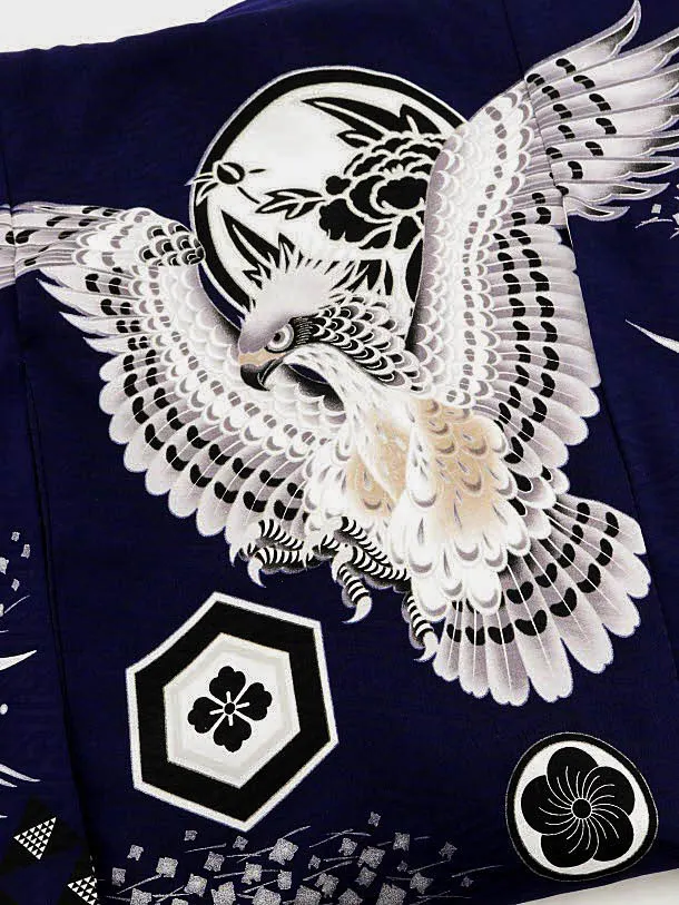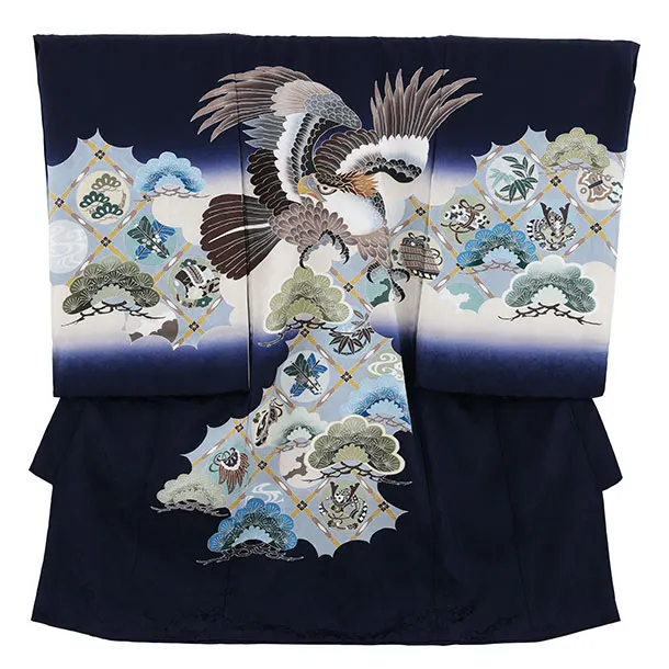 男児産着 お宮参り レンタル 1620 ジャパンスタイル紺地松鷹紋