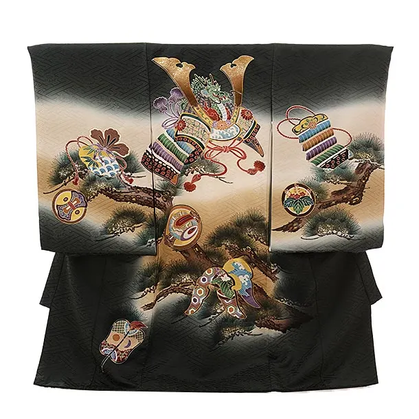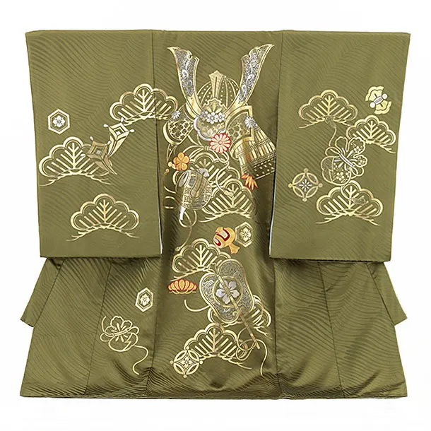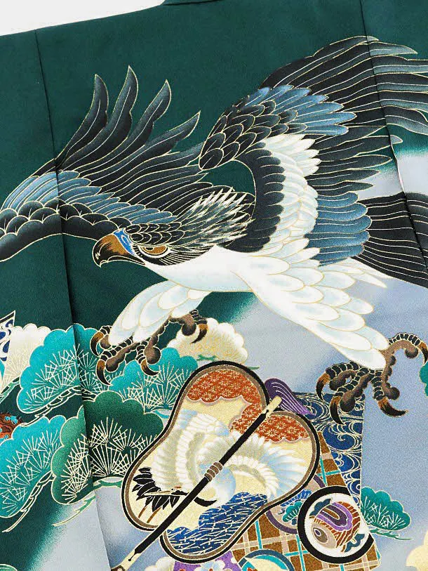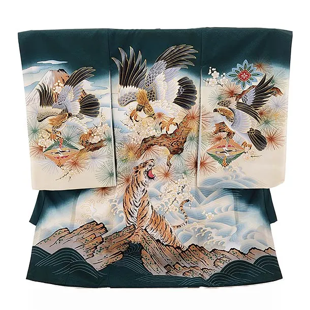 男児産着 お宮参り レンタル 1623 深緑地ぼかし 鷹かぶと