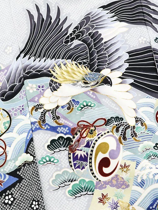 男児産着 お宮参り レンタル 1625 薄グレー裾黒 疋田柄鷹