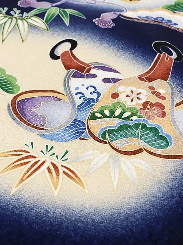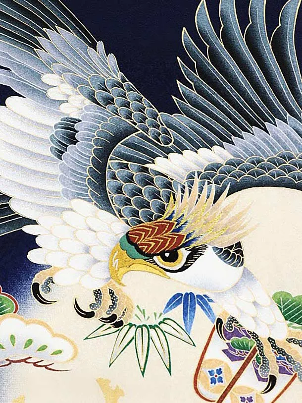 男児産着 お宮参りレンタル1628 【正絹】紺地 鼓 兜 鷹