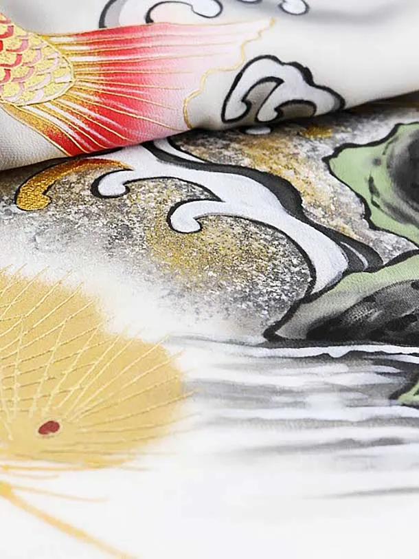 男児産着 お宮参りレンタル1646 【正絹】白地 金彩 鯉と龍