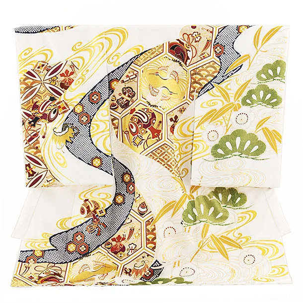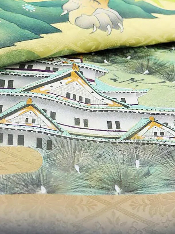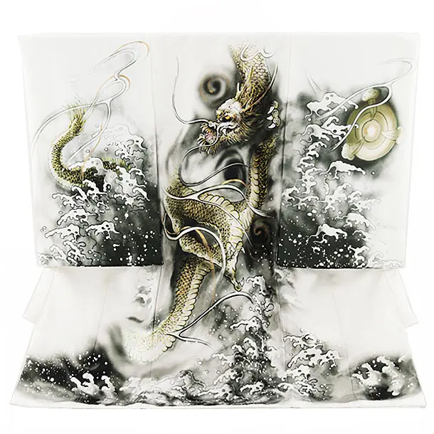 男児産着 お宮参りレンタル1647 【正絹】白ぼかし 虎と城