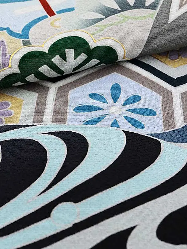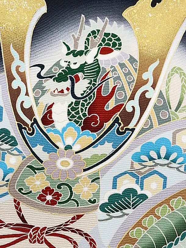 男児産着 お宮参りレンタル1659 【正絹】黒地 波 兜