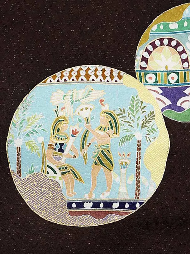 男児産着 お宮参りレンタル1672 【正絹】こげ茶ラメ 古代エジプト