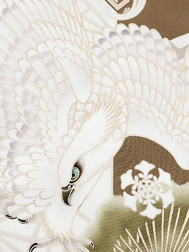 男児産着 お宮参りレンタル1679 JAPANSTYLE 白xキャメル 白鷹