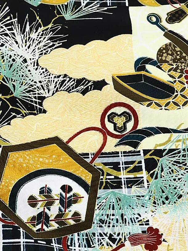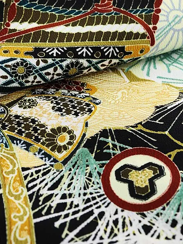 男児産着 お宮参りレンタル1682 黒地 松に兜