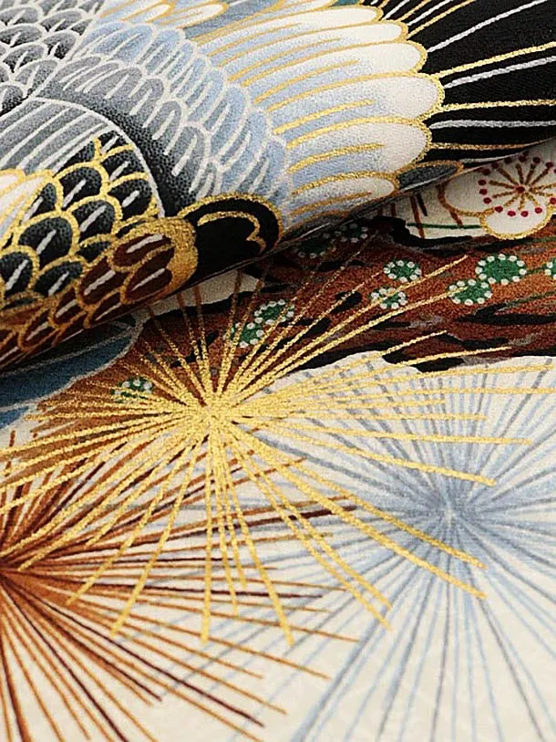 お祝い着をかける時は 絵柄がよく見える様に広げ抱いた子供の体を覆う様に掛け産着の付紐の一方を肩側から他方を脇から通して 抱き手の方の背で蝶結びにします。