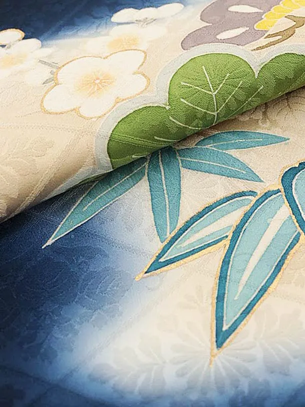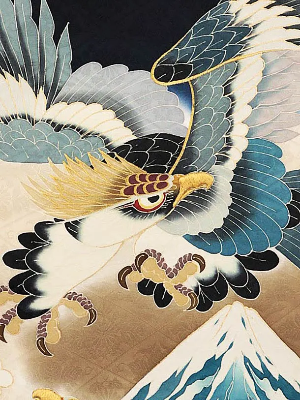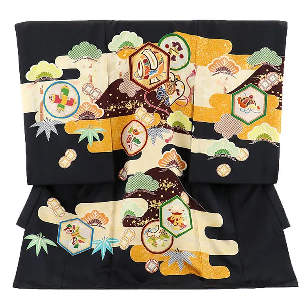男児産着 お宮参りレンタル1775 【高級正絹】紺地 松竹梅 富士に鷹
