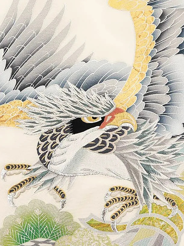 男児産着 お宮参りレンタル1777 【高級正絹】白地 束ね熨斗に鷹