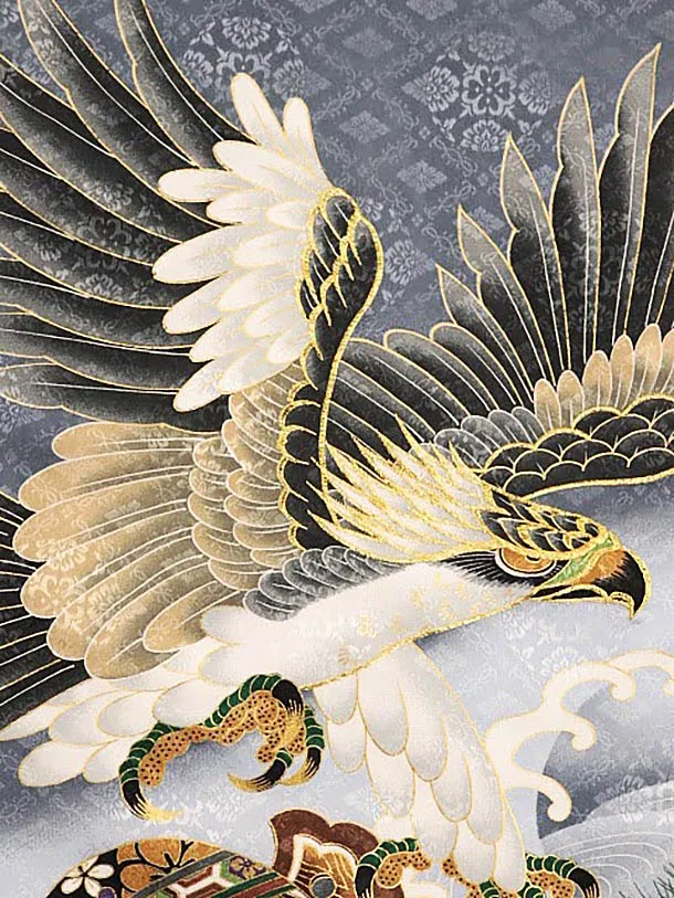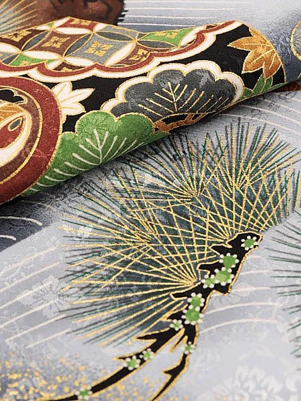 夏用 男児産着 お宮参りレンタル 1781 単衣 グレー地 鷹に小槌