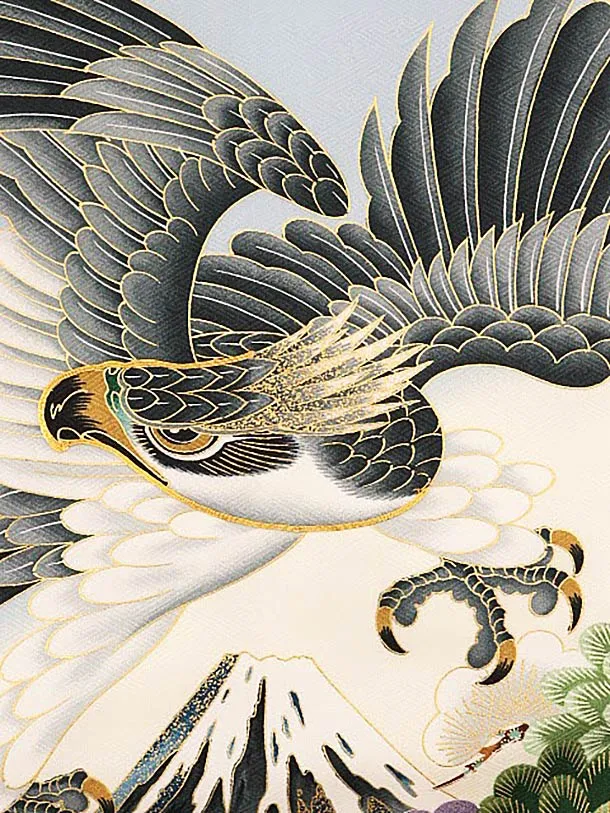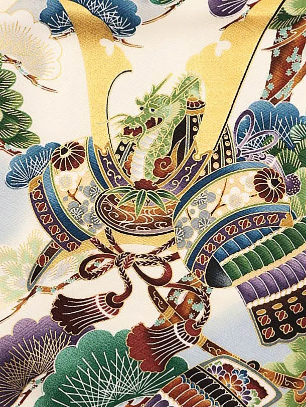 夏用 男児産着 お宮参りレンタル 1784 単衣 薄グレー地 富士鷹かぶと