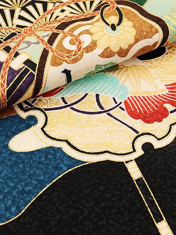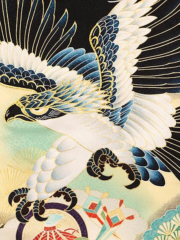 夏用 男児産着 お宮参りレンタル 1786 単衣 黒地 鷹吉祥文様