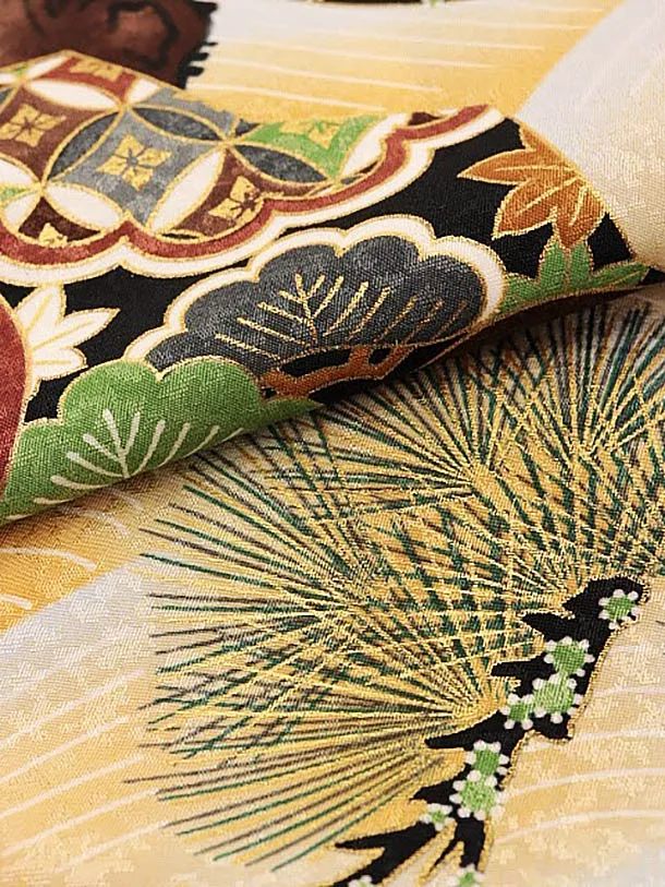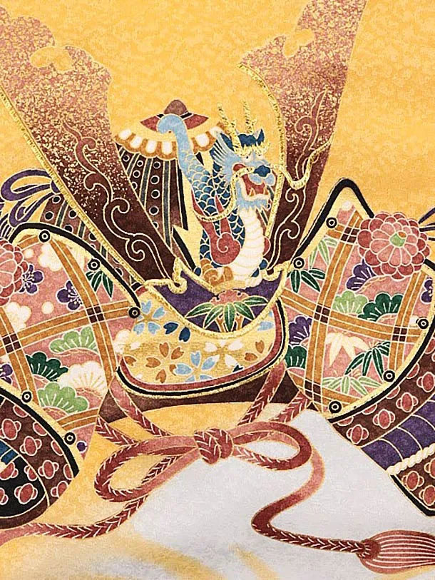 夏用 男児産着 お宮参りレンタル 1789 単衣 山吹色 松に兜龍