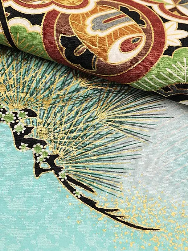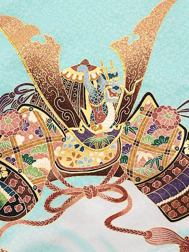 夏用 男児産着 お宮参りレンタル 1791 単衣 水色地 松に兜龍