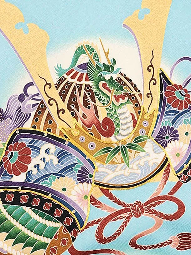 夏用 男児産着 お宮参りレンタル 1793 単衣 水色 松竹梅 兜