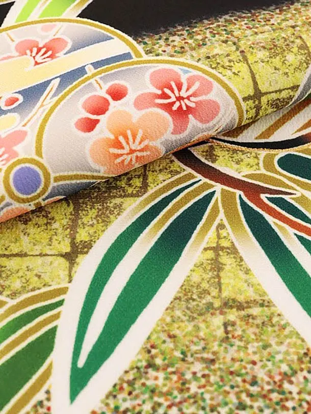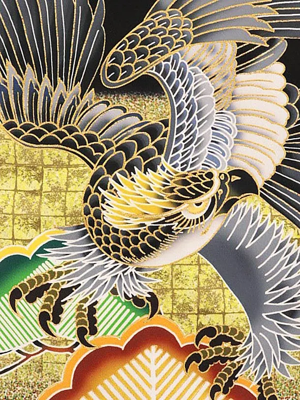 男児産着 お宮参りレンタル1835 黒地 松竹梅に鷹