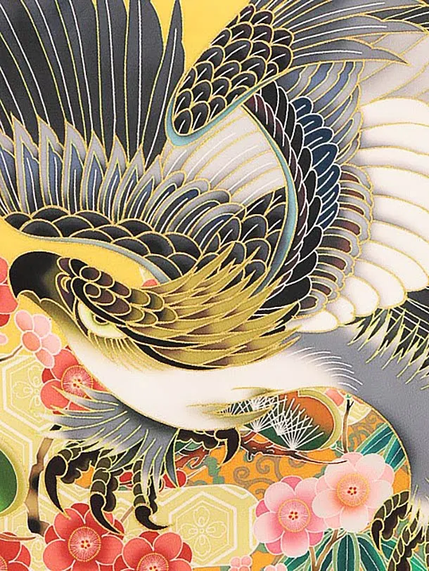 男児産着 お宮参りレンタル1840 黒地 霞に松竹梅鷹