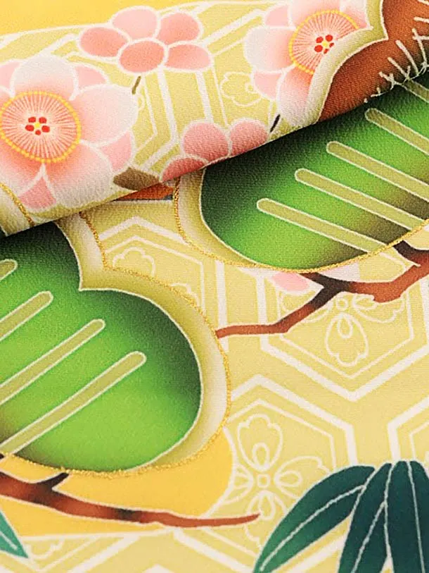 お祝い着をかける時は 絵柄がよく見える様に広げ抱いた子供の体を覆う様に掛け産着の付紐の一方を肩側から他方を脇から通して 抱き手の方の背で蝶結びにします。