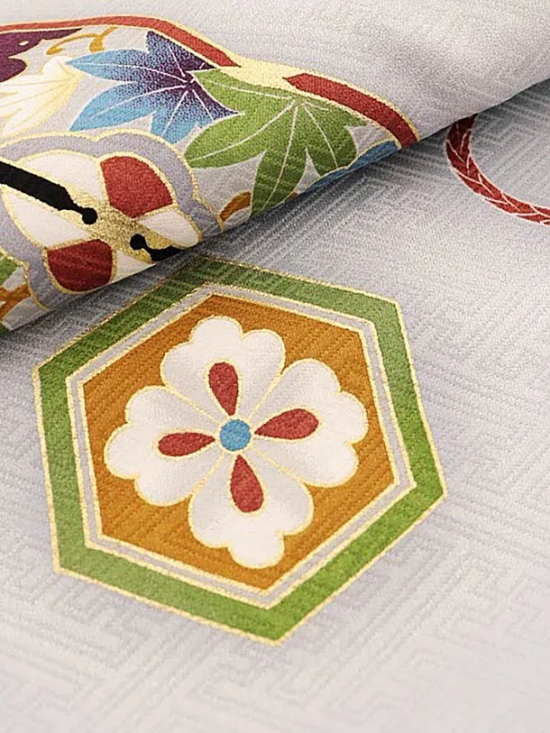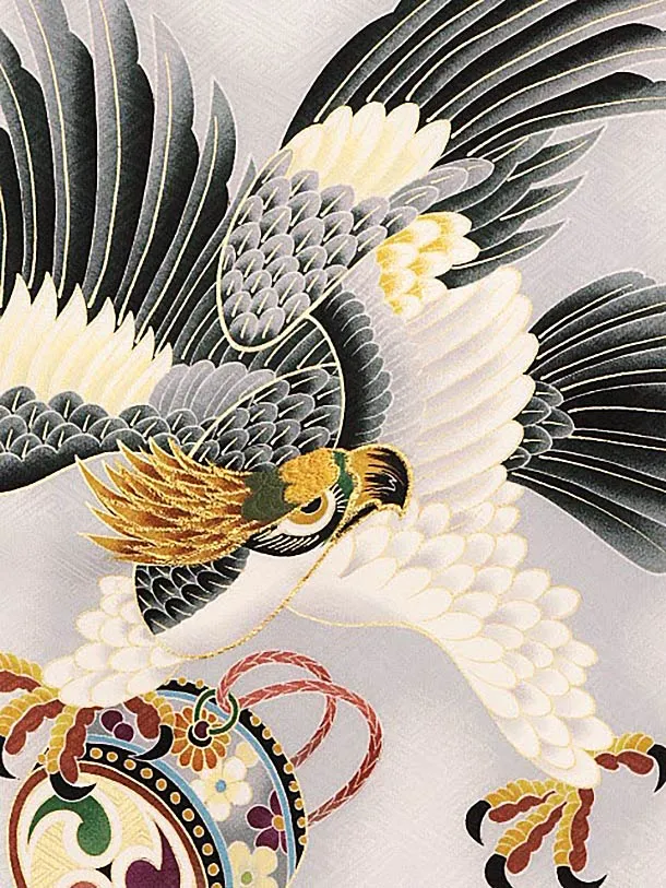 男児産着 お宮参りレンタル1843 うすグレー地 吉祥文様に鷹