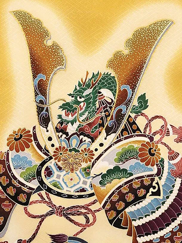 男児産着 お宮参りレンタル1844 からし色 吉祥文様 兜