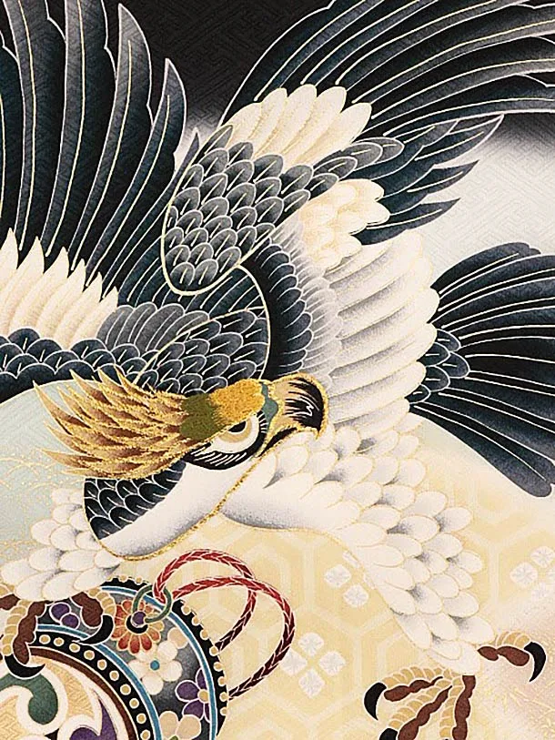 男児産着 お宮参りレンタル1845 黒地 兜 鷹
