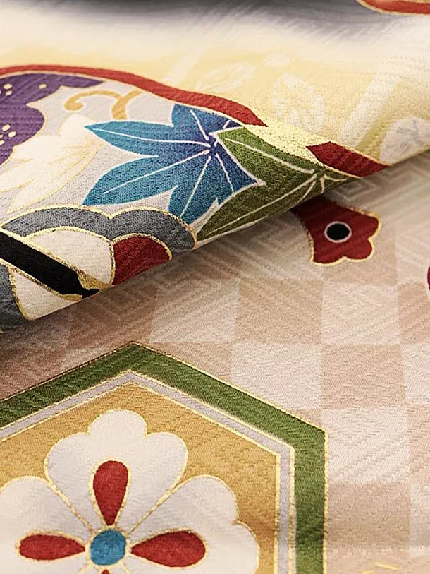 お祝い着をかける時は 絵柄がよく見える様に広げ抱いた子供の体を覆う様に掛け産着の付紐の一方を肩側から他方を脇から通して 抱き手の方の背で蝶結びにします。