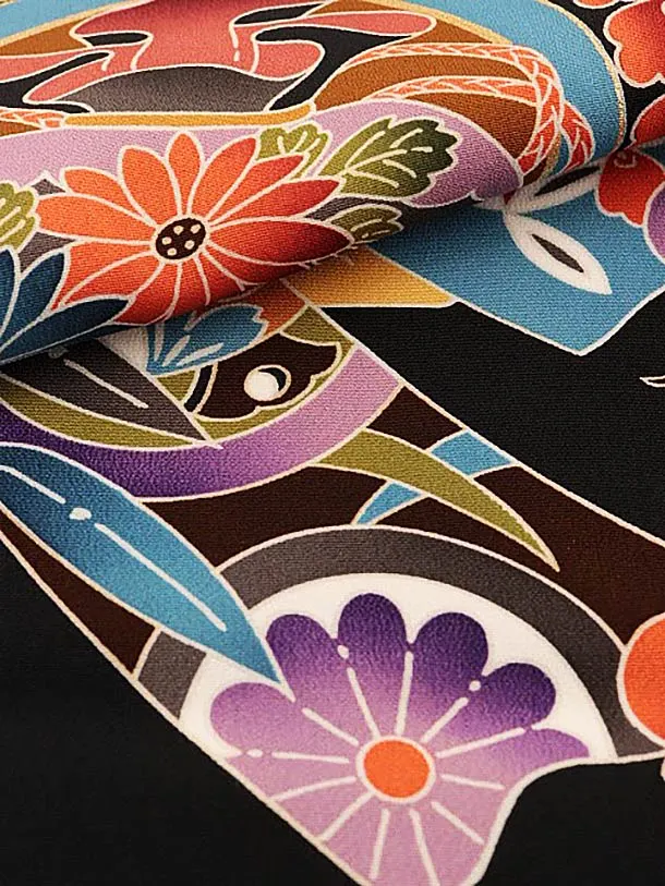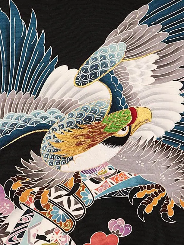 男児産着 お宮参りレンタル1851 黒地 束ね熨斗に鷹