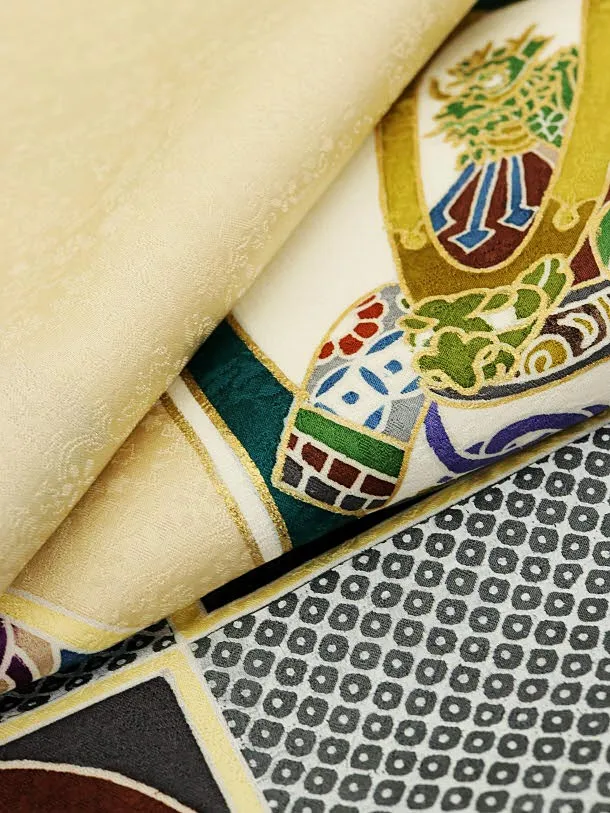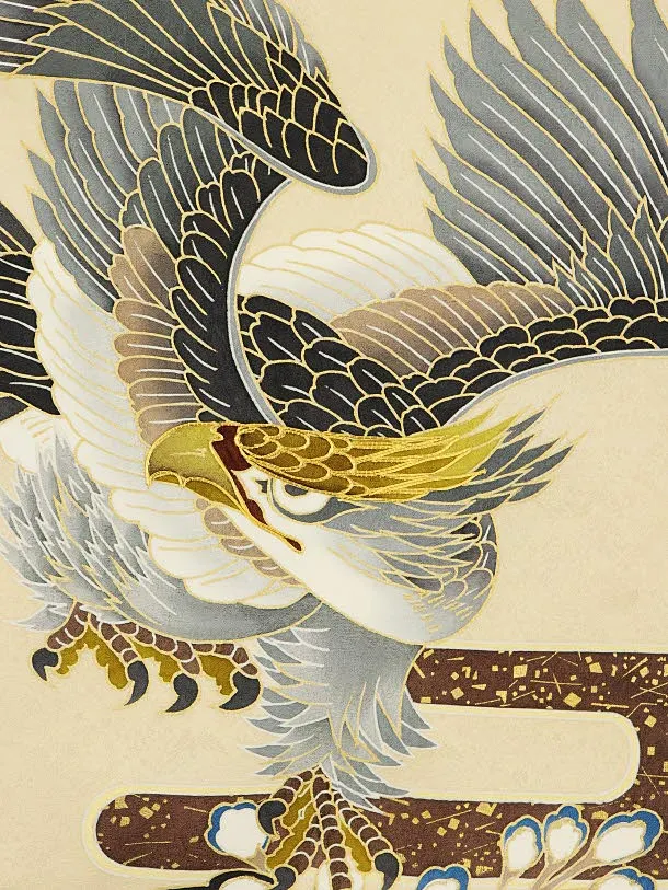 男児産着 お宮参りレンタル1911【高級正絹】ベージュ 鷹