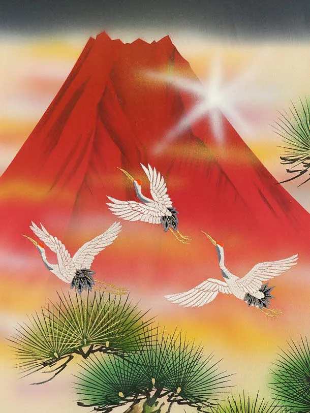 男児産着 お宮参りレンタル1914 正絹 紺地 赤富士と鶴