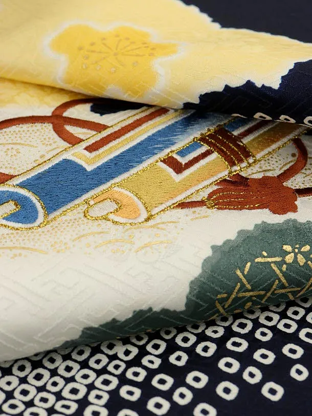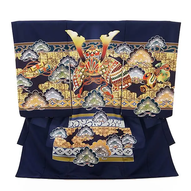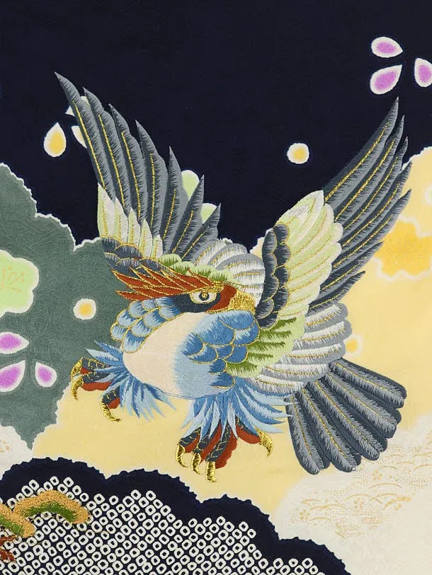 男児産着 お宮参りレンタル1920 正絹 紺地 雲取り刺繍 鷹