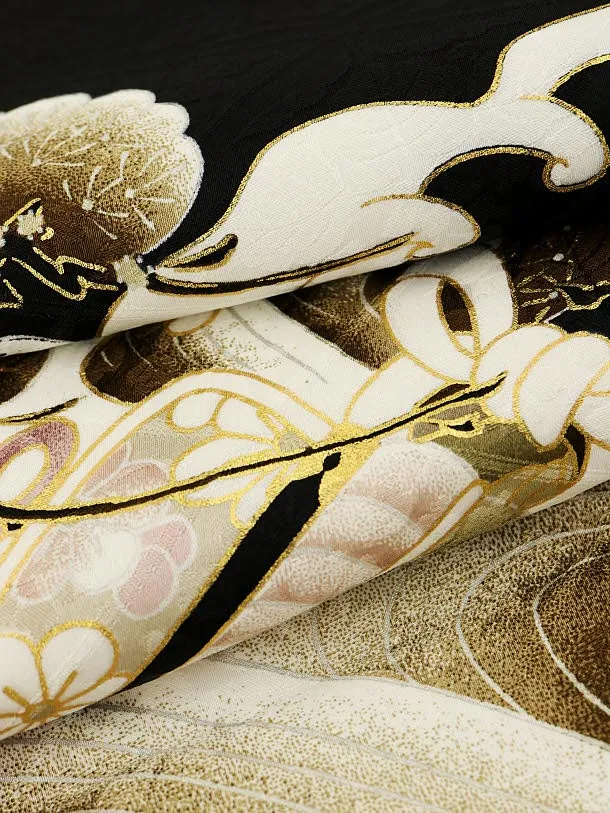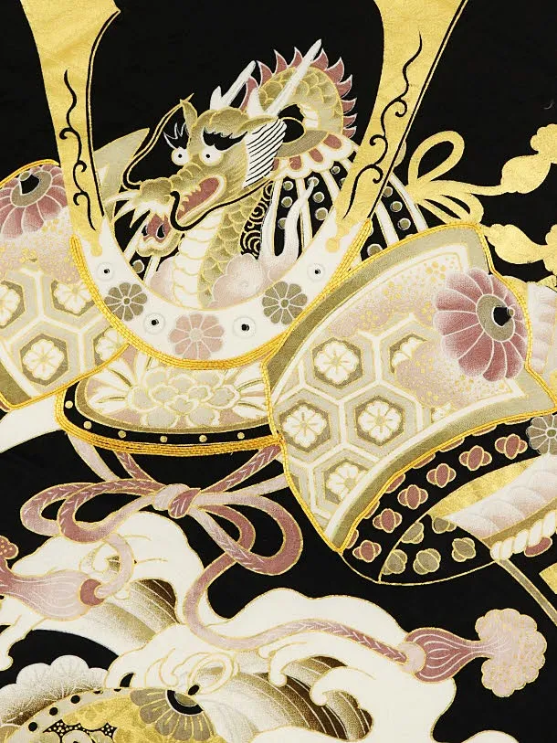 男児産着 お宮参りレンタル1924 正絹 黒地 兜と波