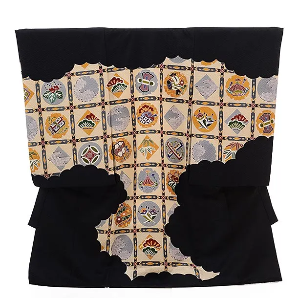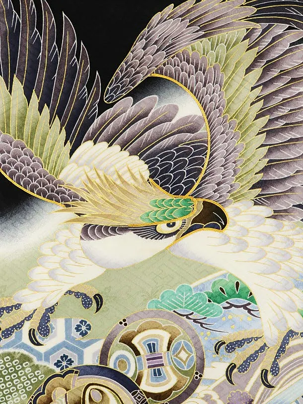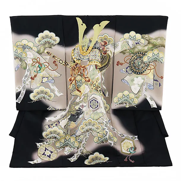 男児産着 お宮参りレンタル1930 正絹 黒地 鷹に小槌