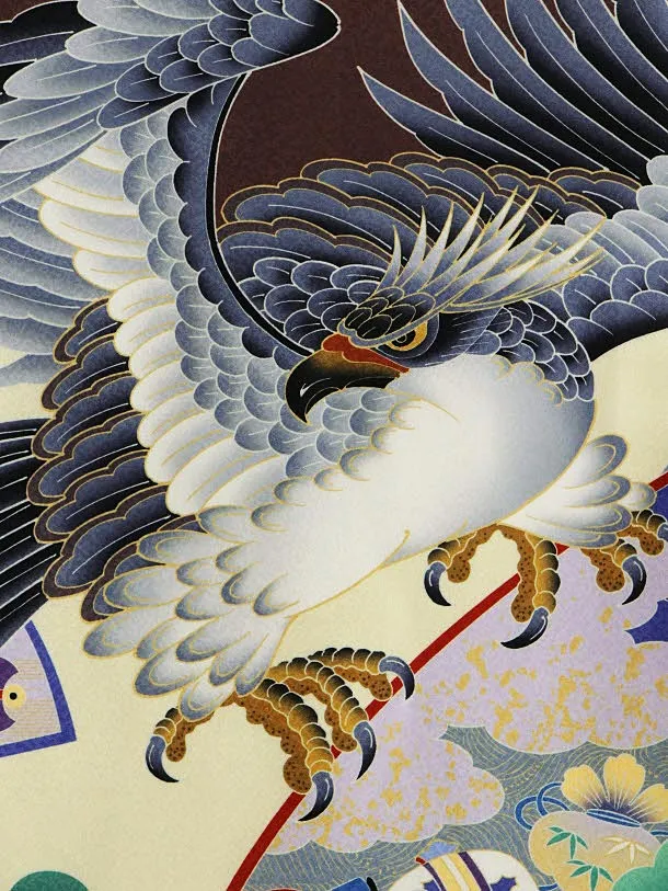 男児産着 お宮参りレンタル1939 茶色地 鷹と兜