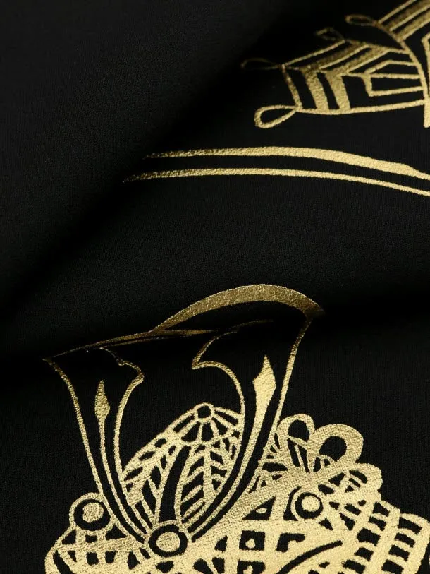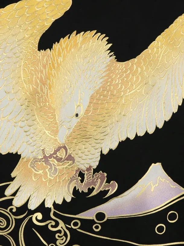 男児産着 お宮参りレンタル1950(高級正絹) 和田光正 黒地 鷹に富士 金彩