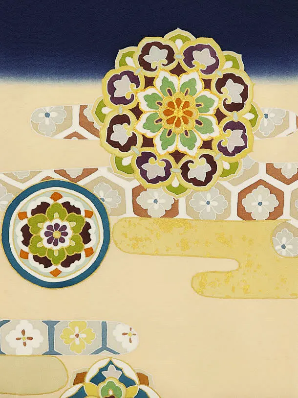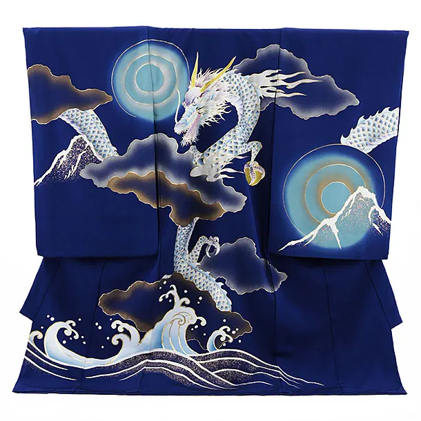 男児産着 お宮参りレンタル1955 正絹 紺地 かすみに唐花文