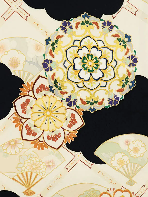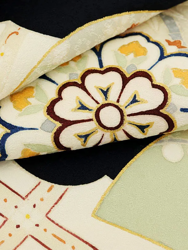 男児産着 お宮参りレンタル1958(高級正絹) 黒地 雲取り 唐花文