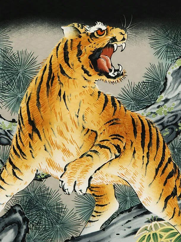 男産着 お宮参りレンタル1964 黒地 虎に松 波