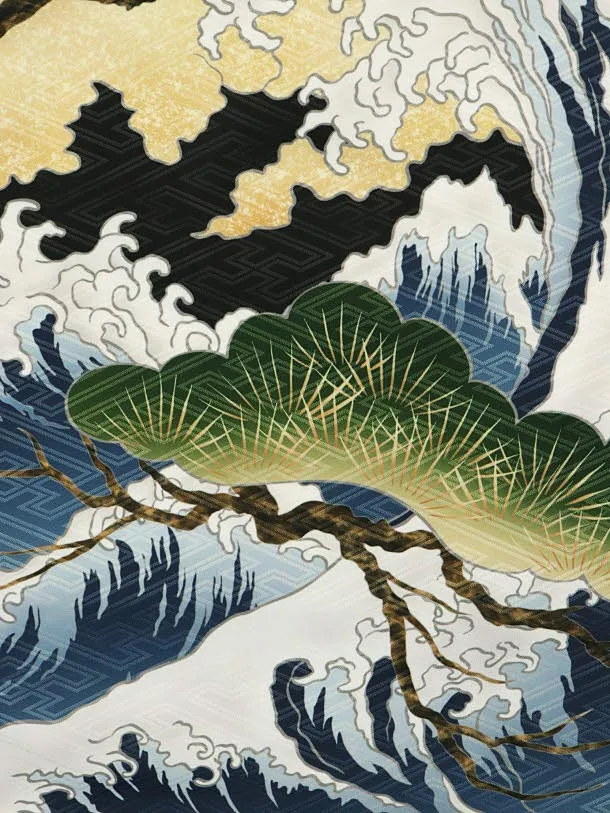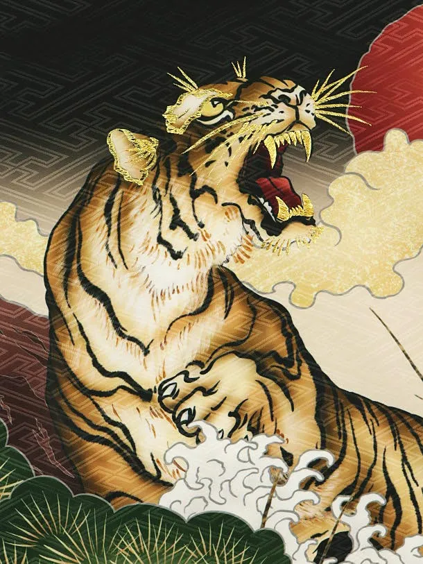 男児産着 お宮参りレンタル1965 黒地 虎 富士 波