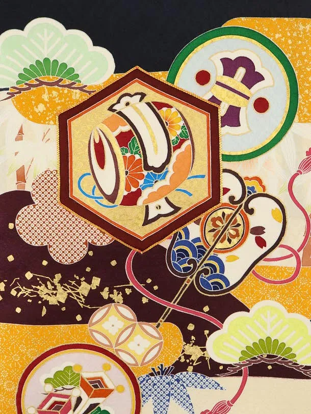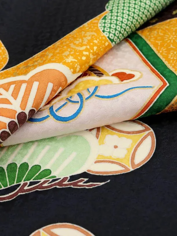男児産着 お宮参りレンタル1976【高級正絹】黒濃紺地 吉祥文様