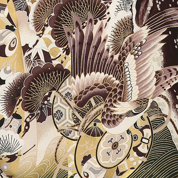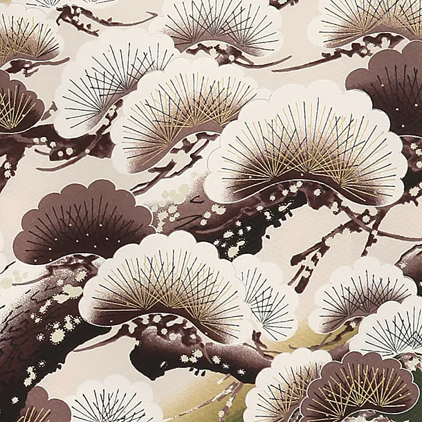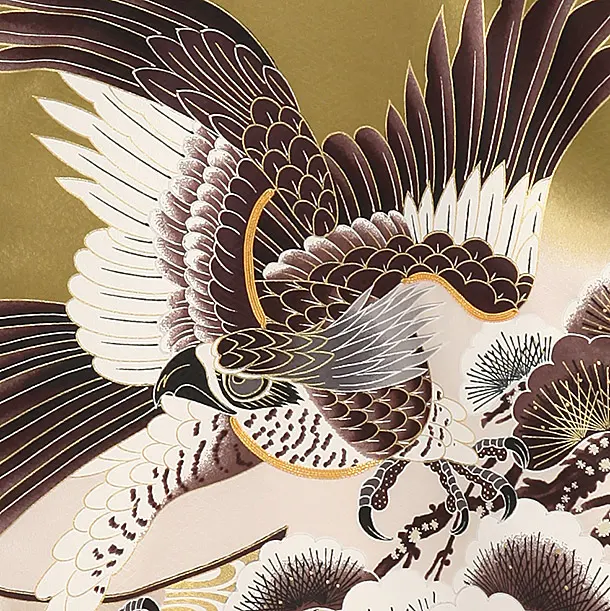 男児産着 お宮参りレンタル2004 渋緑茶色地 鷹に松 熨斗