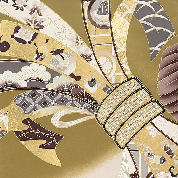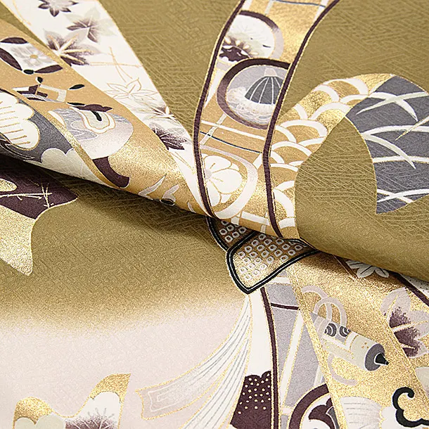 お祝い着をかける時は 絵柄がよく見える様に広げ抱いた子供の体を覆う様に掛け産着の付紐の一方を肩側から他方を脇から通して 抱き手の方の背で蝶結びにします。