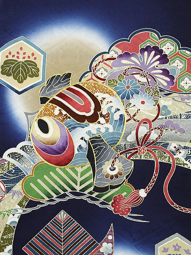 男児産着 お宮参りレンタル2005 正絹 紺地 小槌に熨斗