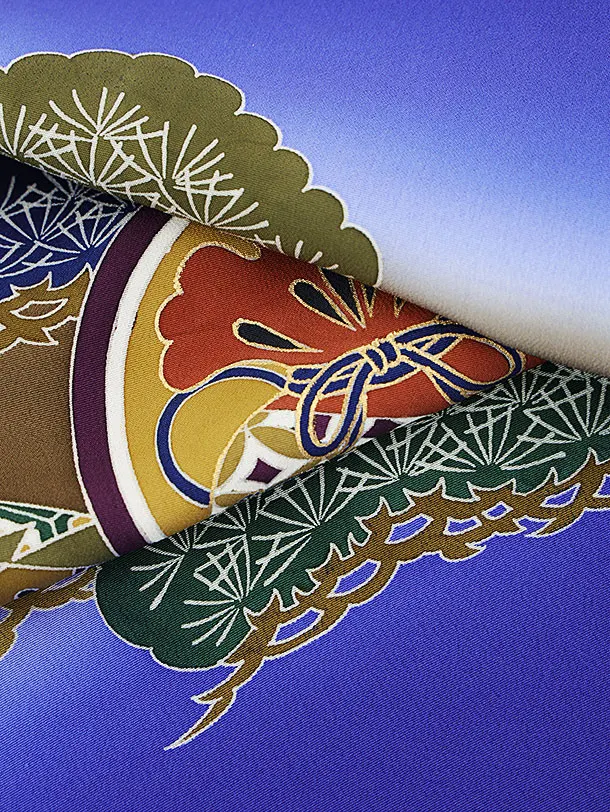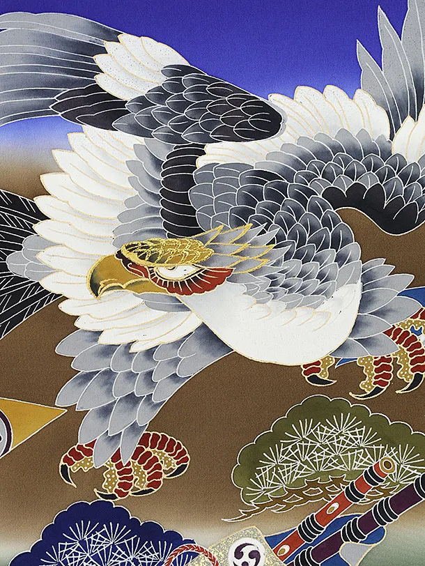 男児産着 お宮参りレンタル2007 正絹 ブルー地 鷹