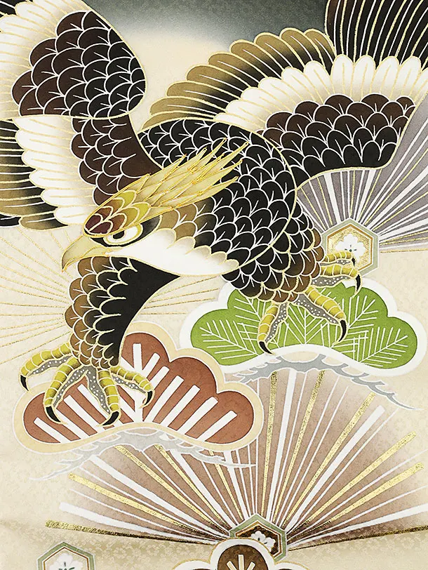 男児産着 お宮参りレンタル2010 正絹 千歳茶色地 鷹に松