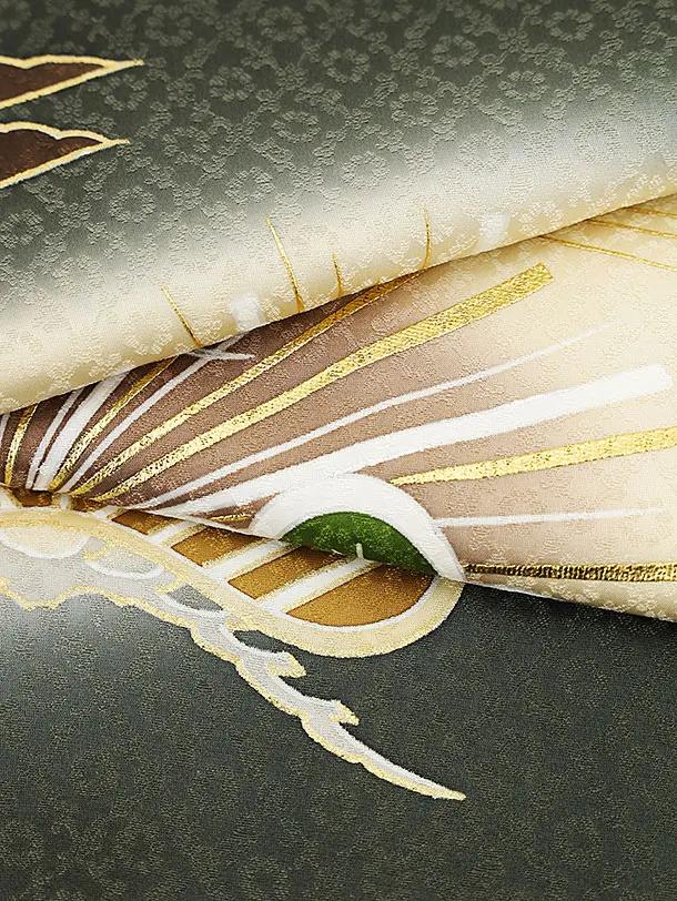 お祝い着をかける時は 絵柄がよく見える様に広げ抱いた子供の体を覆う様に掛け産着の付紐の一方を肩側から他方を脇から通して 抱き手の方の背で蝶結びにします。