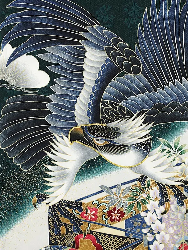 男児産着 お宮参り 2057 単衣 濃緑地 鷹
