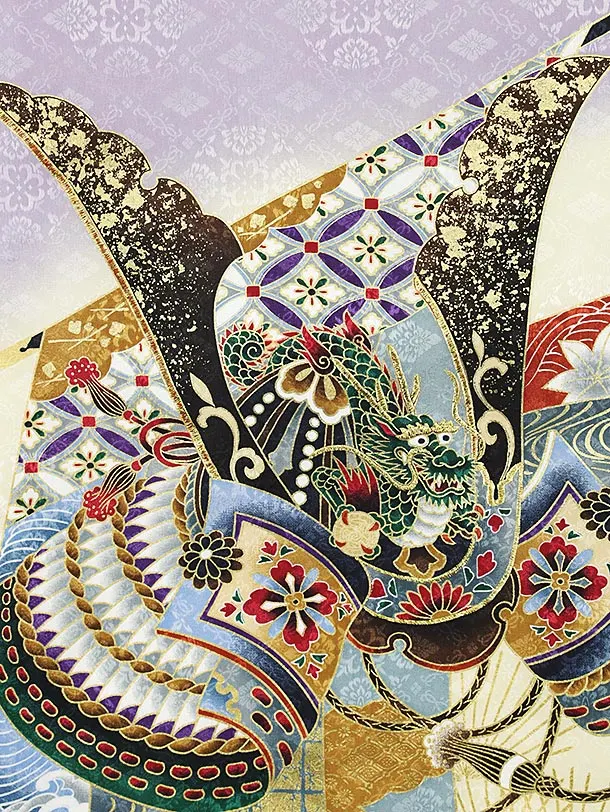 男児産着 お宮参り 2062 単衣 うす紫地 兜 熨斗